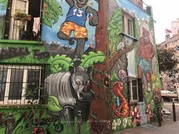 Le Panier est une zone plus ancienne, qui est un autre endroit important du street art marseillais. Ce quartier est un mélange entre l’histoire et la modernité. Là, on peut trouver des œuvres qui se mélangent bien avec l’architecture du quartier. Les artistes adaptent souvent leur style aux murs anciens et aux ruelles étroites. C’est le plus vieux quartier de Marseille, avec des petites rues où presque chaque mur porte une fresque ou un graffiti. Le street art au Panier est plus décoratif que politique. Dans ce quartier, il y a un “tour” du street art, et aussi une fête qui lui est dédiée; le street art du Panier est plus attractif pour les touristes, et moins lié à la politique. On peut par exemple voir des œuvres de Nhobi, un artiste brésilien connu pour ses personnages avec des visages grimaçants, comme sur cette image. Quelques graffeurs n’aiment pas le street art de cette zone. Dans un article d’OpenEdition, un graffeur dit que “le Panier est devenu Disneyland, alors qu’avant personne ne venait dans ce quartier”. Cette critique montre la peur de perdre l’authenticité.