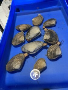 Preparing surfclams to spawn at Rutgers Aquaculture Innovation Center (AIC).