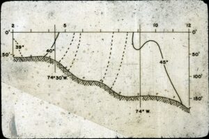 Temperature distribution transect off of Cape May, NJ. Recorded winter Feb-March 1952.
