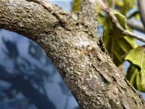 - Whole stem surfaces or trunks may become covered in multiple layers of scales