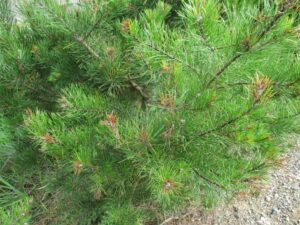 Nantucket Pine Tip Moth infesting multiple twig shoots of this Jersey scrub pine (Pinus virginiana). (Photo Credit: Steven K. Rettke, Rutgers Coop. Ext.)