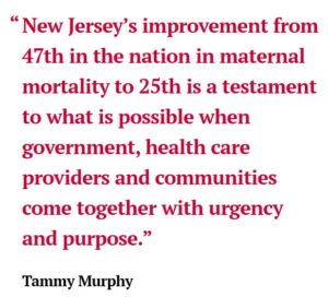 “New Jersey’s improvement from 47th in the nation in maternal mortality to 25th is a statement to what is possible when government, health care providers, and communities come together with urgency and purpose,” said New Jersey First Lady Tammy Murphy. “Through Nurture NJ, and in collaboration with our legislative partners, we have supported the development of smart, innovative policies that drive forward our shared mission to protect and uplift New Jersey’s moms and babies. I am proud to have played a part in our state’s transformational journey.”