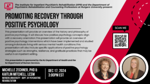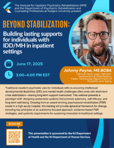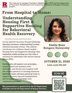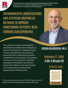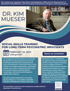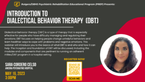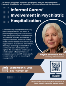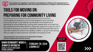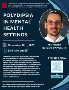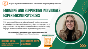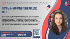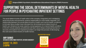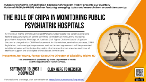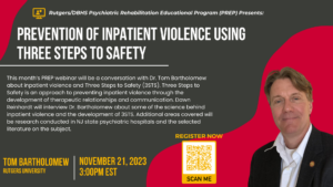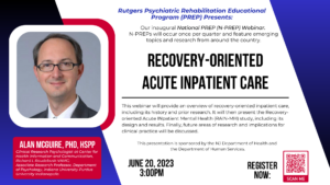 The Psychiatric Rehabilitation Educational Program (PREP) is a free, online, live webinar series sponsored by the New Jersey Department of Health (DBHS) and the Department of Human Services (DMHAS) and the Rutgers Institute for Inpatient Psychiatric Rehabilitation (IIPR). Topics will include important issues for inpatient psychiatric hospital staff.